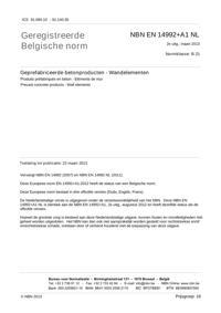 NBN EN 14992+A1 NL : Geprefabriceerde betonproducten - Wandelementen.