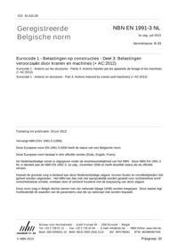 NBN EN 1991-3 NL : Eurocode 1 - Belastingen op constructies - Deel 3 : Belastingen veroorzaakt door kranen en machines (+ AC:2012).