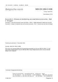 NBN EN 1994-2 ANB : Eurocode 4 - Ontwerp en berekening van staal-betonconstructies - Deel 2 : Bruggen.