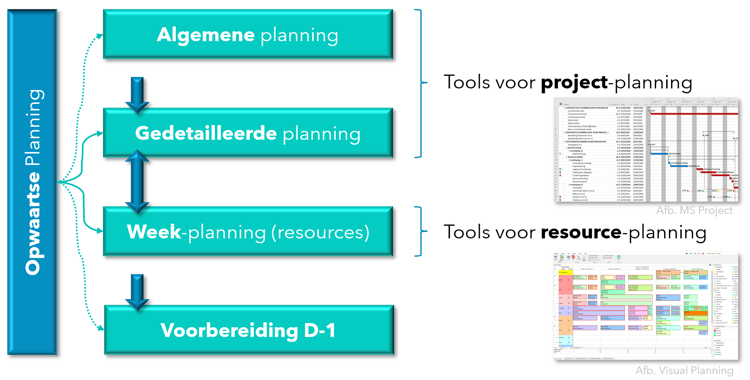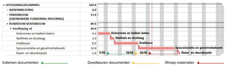 - Opwaartse planning om de werkvoorbereiding en logistiek voor te bereiden