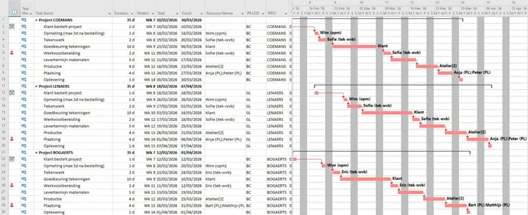 Maar ook bij bedrijven die volgens het concept “projectplanning” werken, bestaat de noodzaak om de beschikbare capaciteit optimaal in te zetten. Dat gebeurt dan vaak in een aparte resourceplanning.