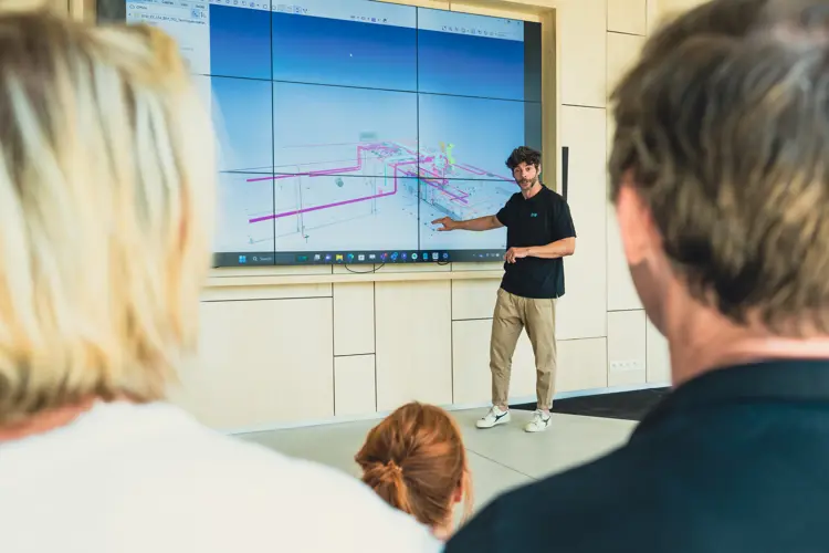 - onderdompeling in het BIM-model dankzij een virtual reality-headset om eventuele problemen op te sporen vóór de werken beginnen